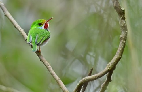 Todis (Todus) gehören zu der Ordnung der Rackenvögel (Coraciiformes) wo in fünf Arten unterschieden wird. Eigentlich leben Todis auf den Große Antillen aber der Vielfarbentodi lebt nur in Kuba. Sie haben einen langen, abgeflachten Schnabel und einen relativ kurzen Schwanz. Todis fallen durch ihre Farbenvielfalt auf. Sie sind an der Oberseite grün, am Kehlbereich rot und auf der Bauchseite weißlich. Männchen und Weibchen unterscheiden sich im Aussehen nur gering. Ihre Nahrung besteht aus Insekten, die sie ähnlich wie bei den Fliegenschnäppern direkt aus der Luft fangen. Man kann sie sehr gut hören, da sie durch ihren schnellen Flügelschlag ein schwirrendes Geräusch erzeugen. Sie leben in lehmigen Erdhängen oder Uferböschungen wo sie auch ihre Nester bauen.